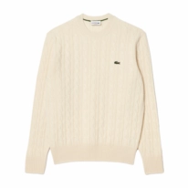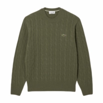 Deze stijlvolle herentrui van Lacoste biedt een perfecte combinatie van comfort, warmte en tijdloze elegantie. Vervaardigd uit 100% diervriendelijke wol en voorzien van een klassiek kabelpatroon, garandeert deze trui optimale isolatie tijdens koude dagen. De zwaar gebreide 7-gauge steek en het verfijnde 5x5 ribbelpatroon zorgen voor een luxueuze uitstraling en een duurzame kwaliteit. De iconische groene streep in de halslijn en de geborduurde krokodil op de borst onderstrepen het sportieve karakter en de rijke traditie van Lacoste. Ideaal voor heren die waarde hechten aan hoogwaardige materialen en een elegante, klassieke pasvorm.